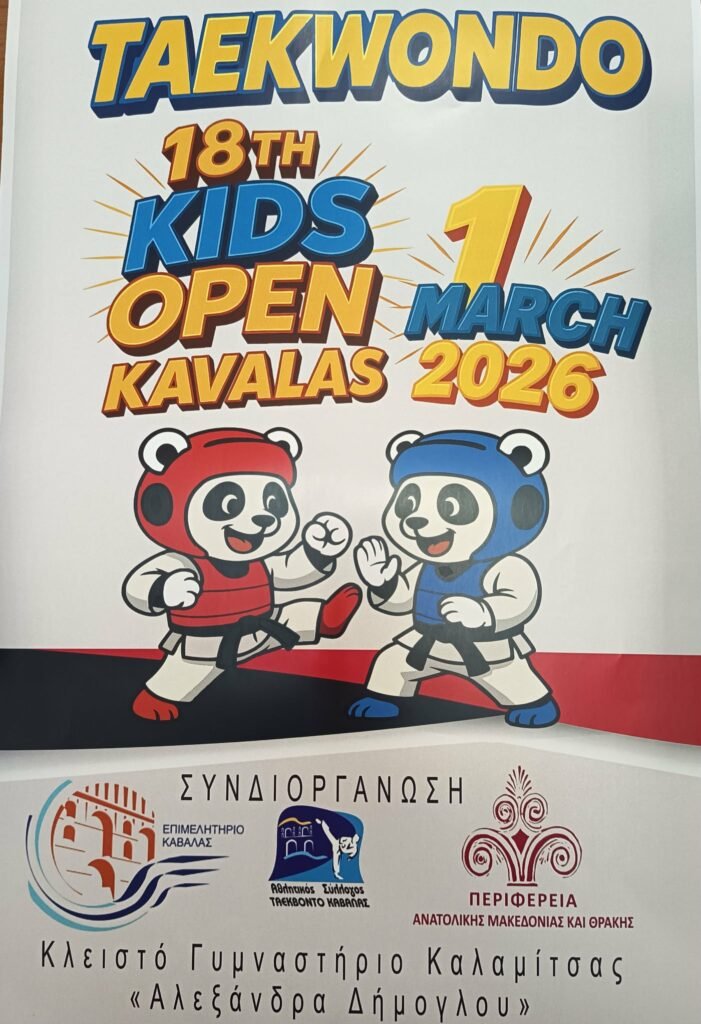 Την πραγματοποίηση της σημαντικής αθλητικής συνδιοργάνωσης του 18ου Kids Open TAE KBO NTO την Κυριακή 1 Μαρτίου στο κλειστό Γυμναστήριο Καλαμίτσας «Αλεξάνδρα Δήμογλου» στην Καβάλα, ανακοίνωσε σήμερα σε συνέντευξη τύπου που παραχώρησε ο Αντιπεριφερειάρχης Καβάλας κ. Θεόδωρος Μαρκόπουλος, από κοινού με τον θεματικό Αντιπεριφερειάρχη Αθλητισμού και Απασχόλησης της ΠΑΜΘ κ. Στυλιανό Ιγνατιάδη, τον Αντιδήμαρχο Αθλητισμού Νεολαίας και Εθελοντισμού Δήμου Καβάλας κ. Κωνσταντίνο Χατζηαναστασίου, τον Πρόεδρο του Επιμελητηρίου Καβάλας κ. Ιωάννη Παναγιωτίδη και τον Προπονητή του Α.Σ. TAE KBO NTO Καβάλας κ. Χάρη Παλτόγλου.